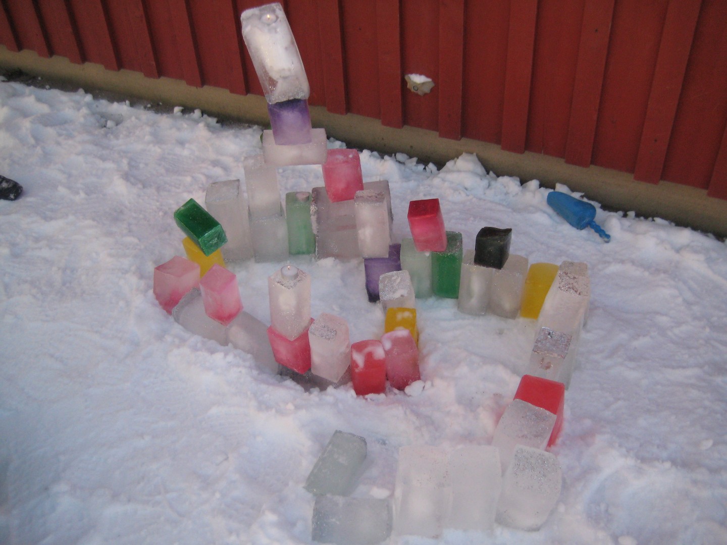 I dag kledde vi på oss godt og gikk ut å bygde is-borg. Barna deltok aktivt med å bygge is-borgen. Isen var laget i forskjellige farger. Vi fylte tomme melkekartonger med vann med glitter og farge. De stod ute i minusgrader og frøs til is. Vi brukte salt og vann for å lime borgen sammen. Tilslutt tente vi lys som vi satt på den flotte borgen vår. Flere bilder ligger til foreldrene.